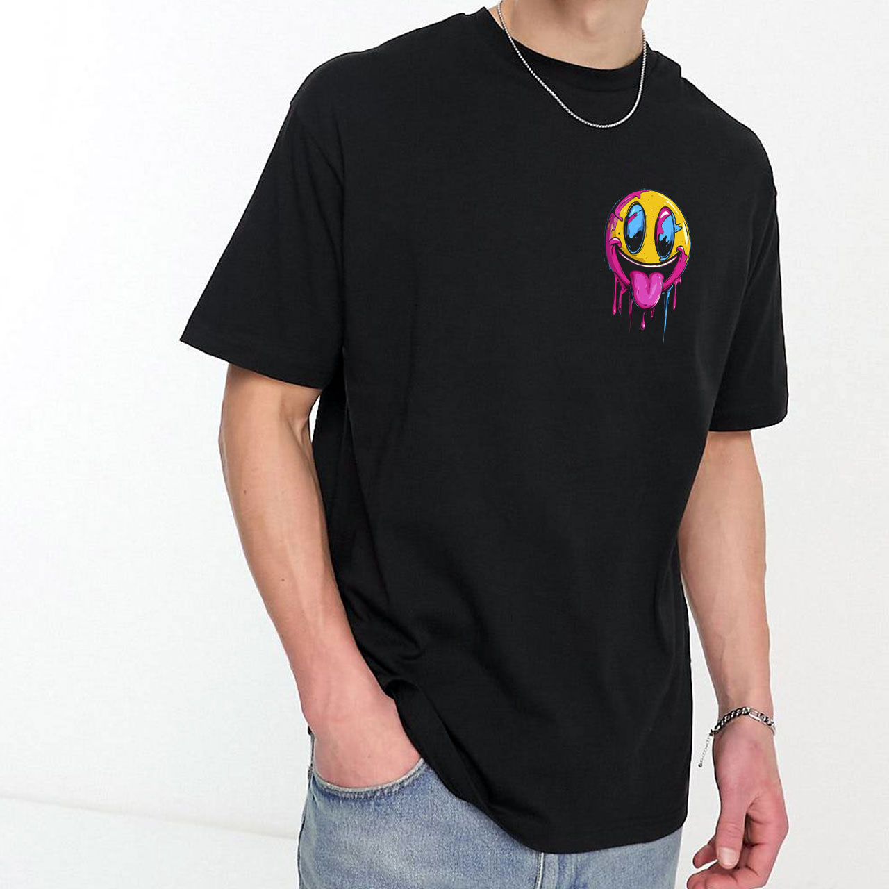 تیشرت نخی آستین کوتاه طرح اموجی خندان رنگی با طراحی نوآورانه گرافیکی، مناسب طرفداران دنیای اموجی هاست؛ همانها که به جای نوشتن چندین جمله، از یک اموجی برای رساندن منظور استفاده می کنند.