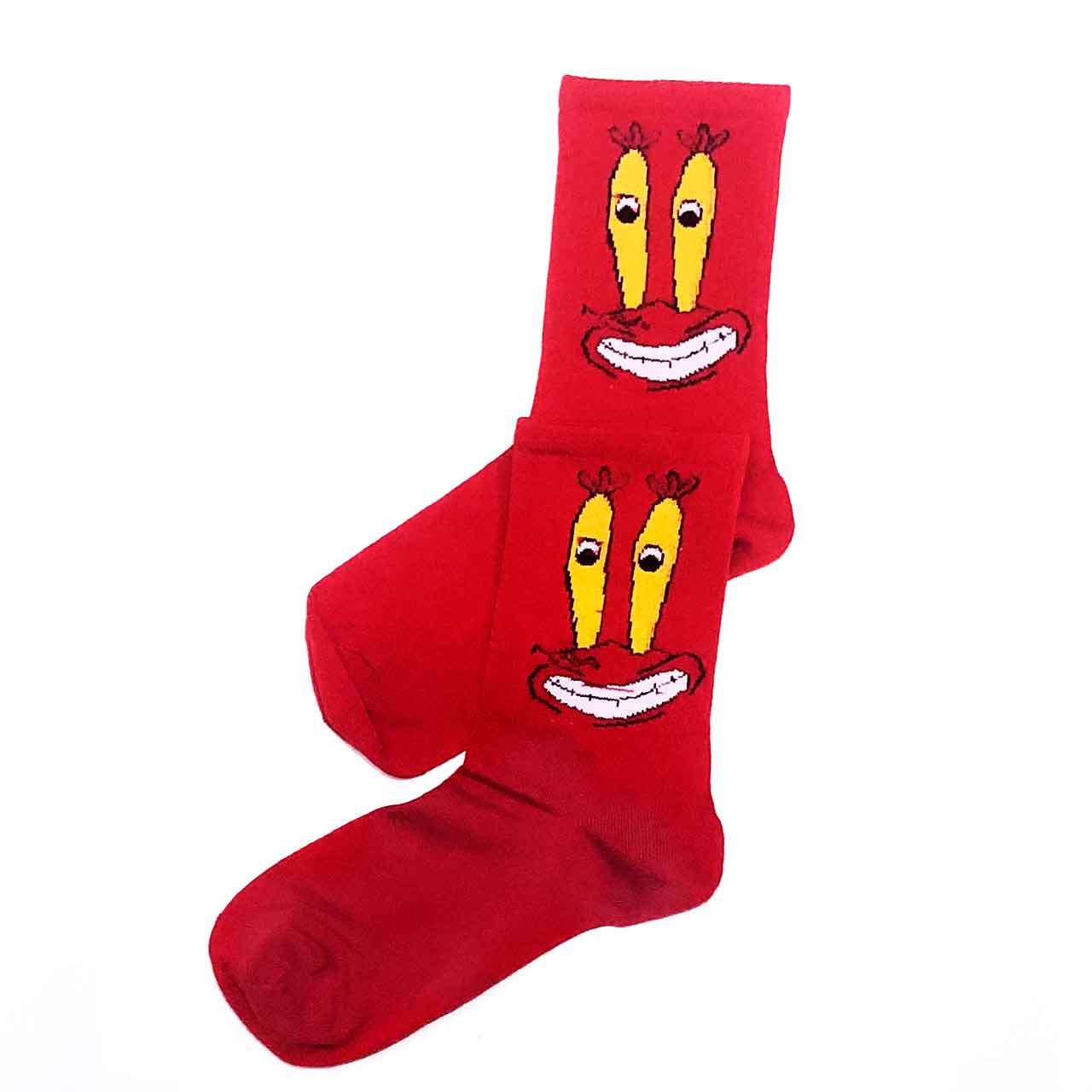 جوراب ساقدار نخی فانتزی کارتونی طرح آقای خرچنگ در ایران به تولید رسیده است و میتوان کیفیت آن را مناسب ارزیابی کرد.