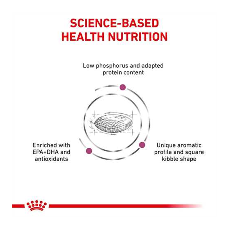 سگهای مبتلا به نارسایی مزمن کلیه از کمبود اشتها رنج میبرند. غذای خشک سگ رویال کنین مدل Renal حتی برای سگهای مبتلا به التهاب لثه بسیار خوشمزه است و راحت جویده میشود. محتوای بالای آنتی اکسیدان میتواند به خنثی کردن رادیکالهای آزاد کمک کند.