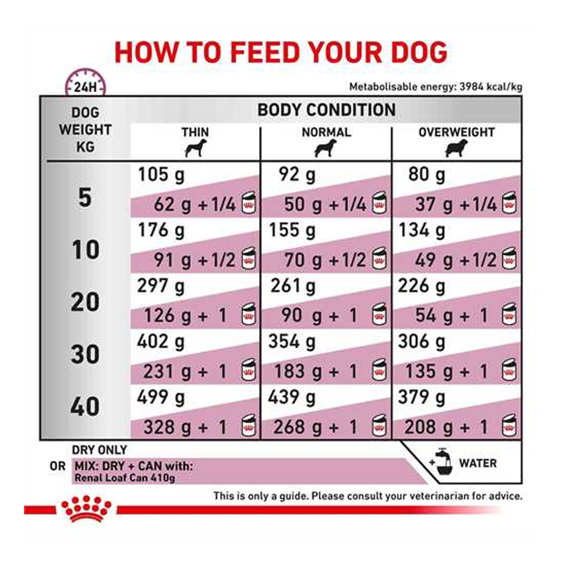 غذای خشک سگ رویال کنین مدل Renal یک غذای کامل برای سگهای بالای 1 سال است که از نارسایی مزمن یا موقت کلیوی رنج میبرند. این غذا از عملکرد کلیه حمایت میکند و به کاهش تشکیل سنگ اگزالات کمک میکند. لطفاً قبل از استفاده از این غذا یا تمدید دوره تغذیه با دامپزشک خود مشورت کنید. هنگامی که سگ خود را با این غذا تغذیه می کنید، باید به طور منظم برای معاینه با دامپزشک خود مشورت کنید. اگر سلامت سگ شما بدتر شد، لطفاً فوراً به دامپزشک مراجعه کنید.
