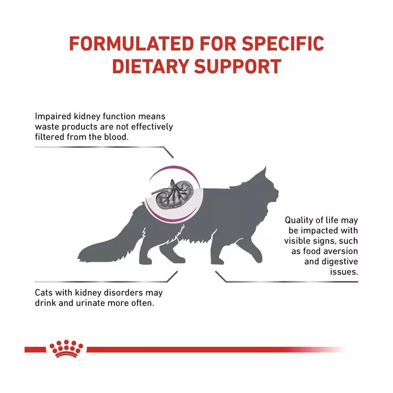 غذای خشک کامل برای گربه های بالای 1 سال که از نارسایی مزمن یا موقت کلیوی رنج می برند. به عملکرد کلیه و کاهش تشکیل سنگ اگزالات کمک می کند.