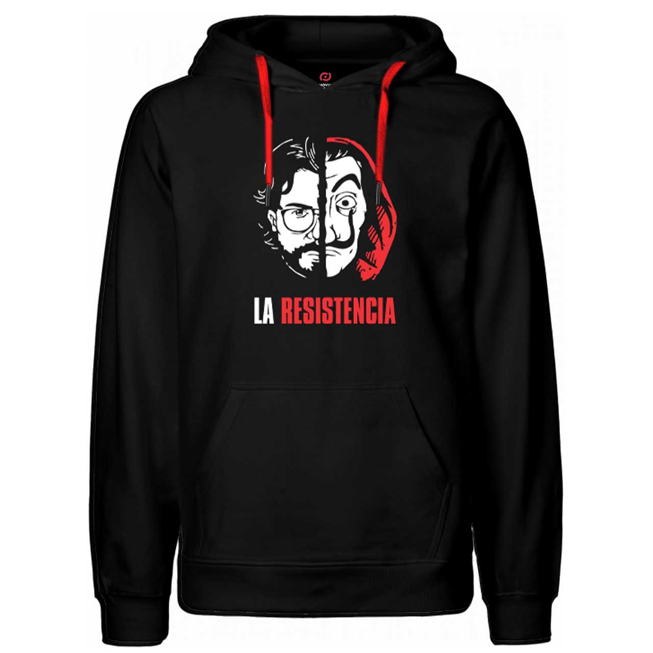 سویشرت هودی طرح سریال مانی هیست، با تصویر نیمه صورت شخصیت پروفسور و ماسک سالوادور دالی برای علاقه مندان به این مجموعه آماده شده است.