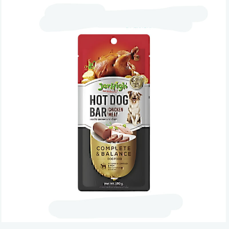تشویقی سگ جرهای مدل هاتداگ با طعم مرغ Jerhigh Hot Dog Bar Chicken Meat وزن 150 گرم