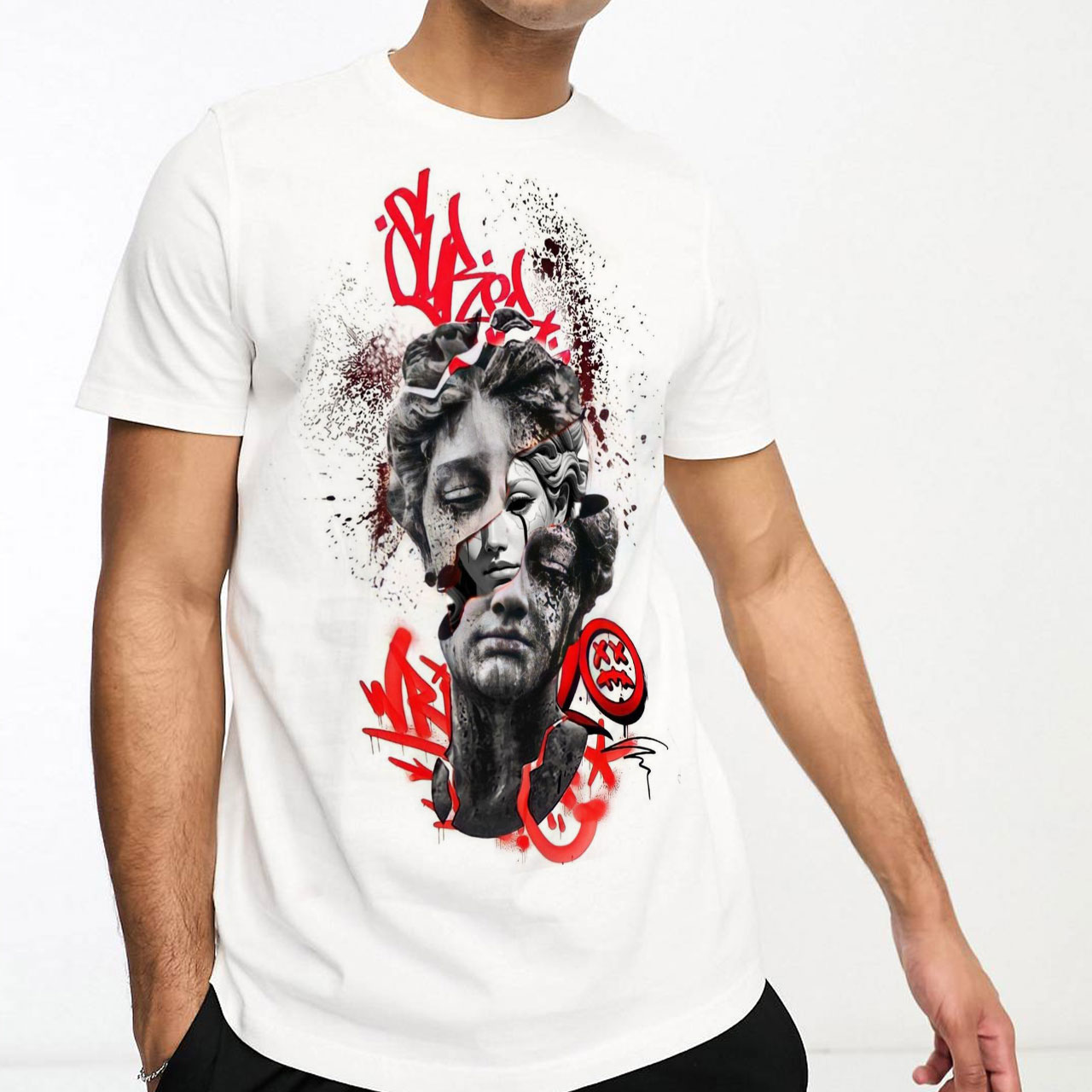 تیشرت نخی آستین کوتاه طرح مجسمه شکسته با طراحی خاص گرافیکی، مناسب کسانی است که این تصاویر روی تیشرت را می پسندند.