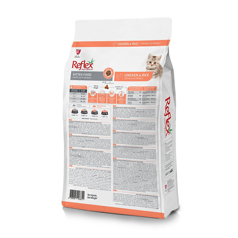 غذای بچه گربه (کیتن) رفلکس، کاملا متعادل و متناسب نیاز های غذایی بچه گربه ها می باشد. این محصول غنی از ویتامین ها و مواد معدنی مفید و ضروری به همراه پروتئین مرغ می باشد و از طعم بسیار خوبی برخوردار است.