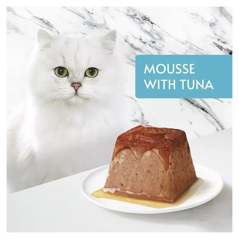 غذای کاسه ای گربه با بافت موس گورمت با طعم ماهی تن یک وعده غذایی عالی و خوشمزه برای شما و دوست پشمالوی شماست. این موس با بافت لطیف و طعم ماهی سالمون، از مواد اولیه مرغوب تهیه شده و فاقد رنگ، طعم دهنده و مواد نگهدارنده مصنوعی است. تمام عناصر بسته بندی به گونه‌ای طراحی شده‌اند که قابل بازیافت باشند.