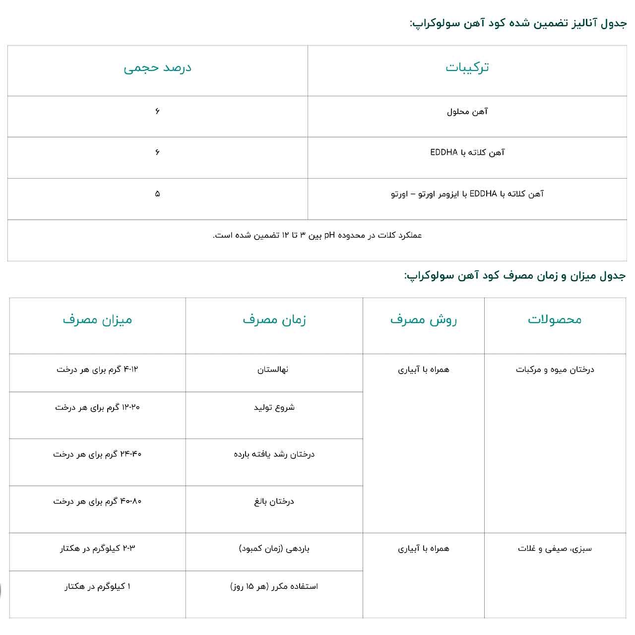 راهنمای مصرف کود آهن سولوکراپ برای سبزی و صیفی و غلات: