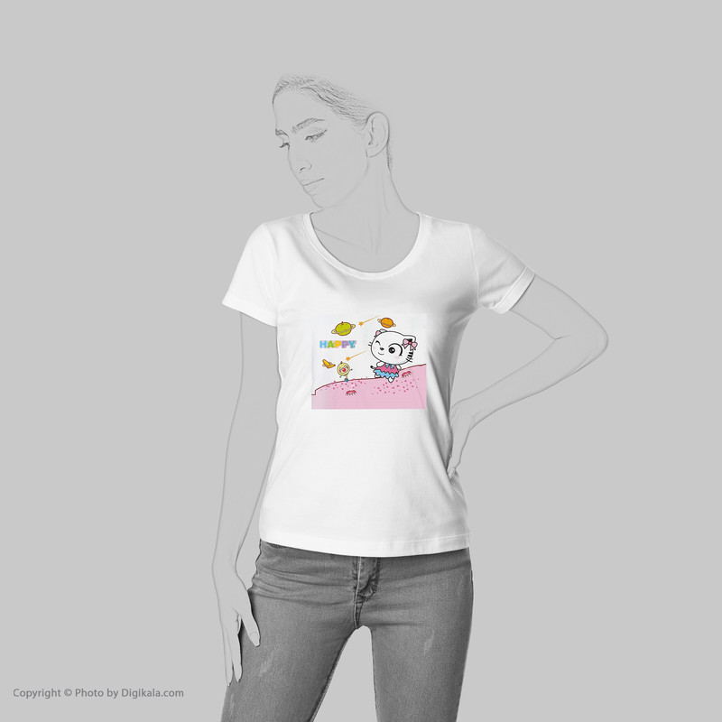 تیشرت آستین کوتاه زنانه بلک اند وایت طرح فانتزی کد 5791
