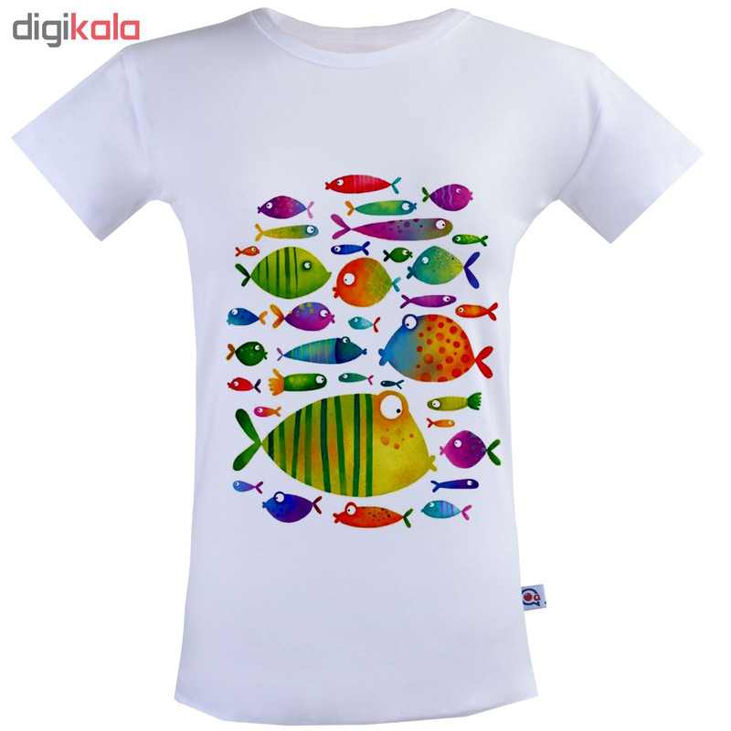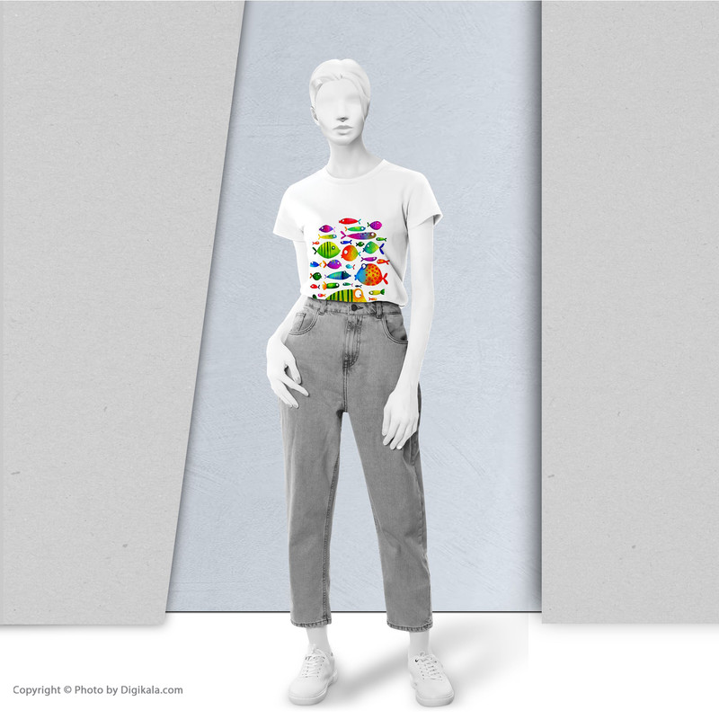 تیشرت زنانه آستین کوتاه نوین نقش طرح ماهی کد BS33