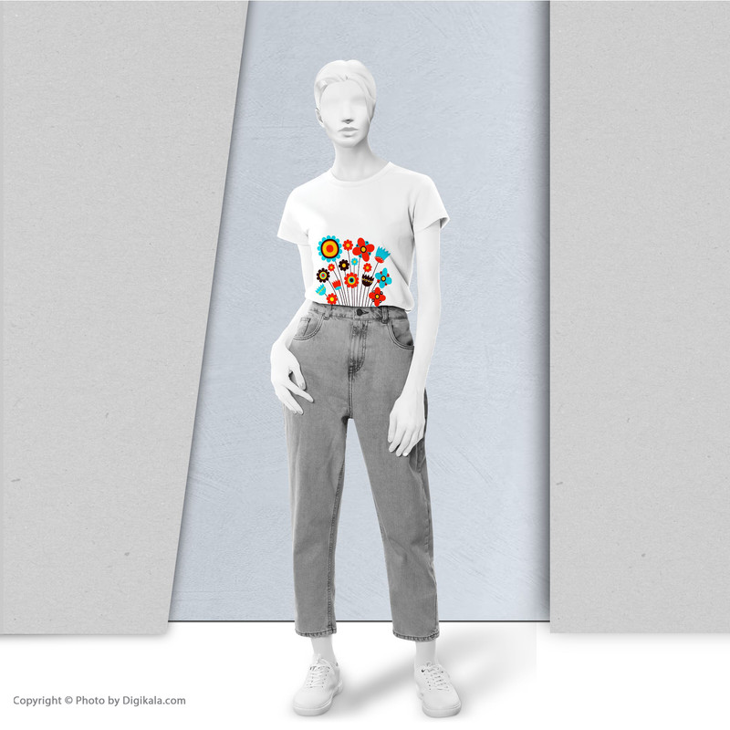 تیشرت زنانه آستین کوتاه نوین نقش طرح گل کد BS06
