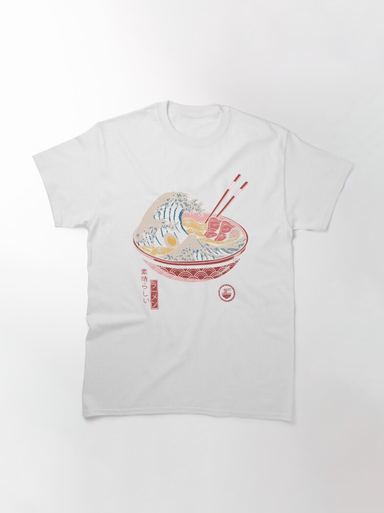 تیشرت نوین نقش طرح Great Ramen Wave کاسه نودل، دارای الگوی دوخت ساده بوده و از کیفیت کافی در دوخت بهره می برد.