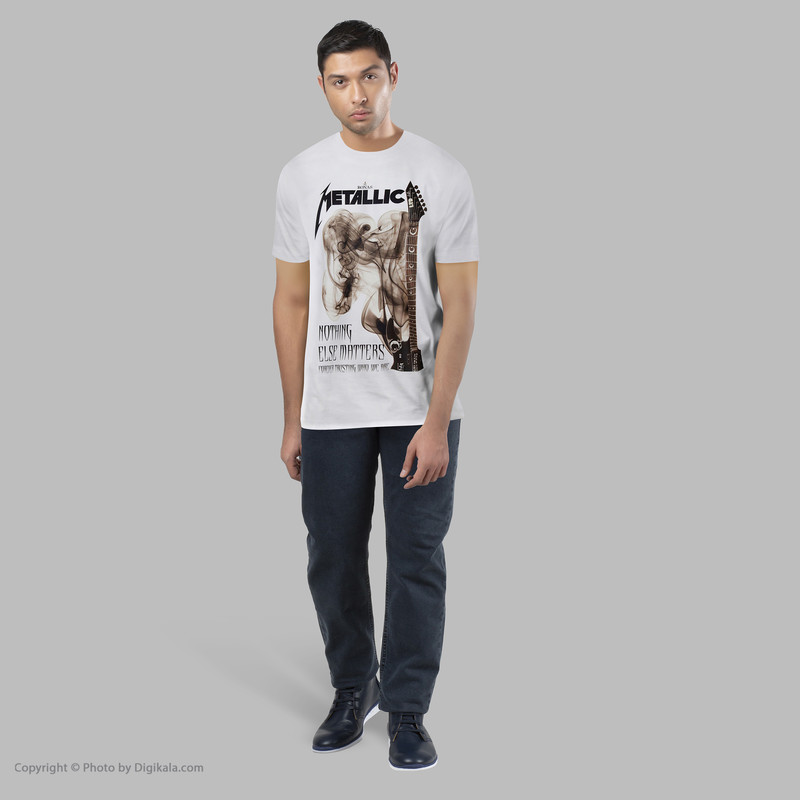 تیشرت مردانه نوین نقش طرح متالیکا کد 307000601 رنگ سفید
