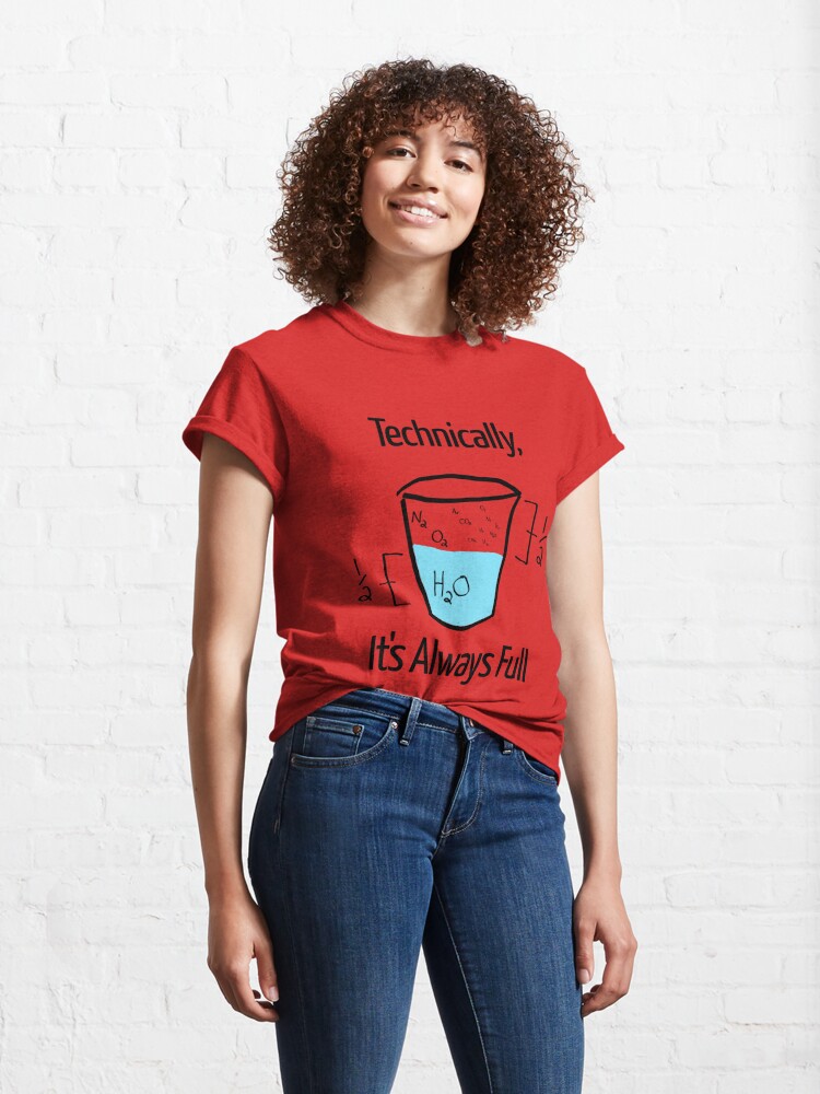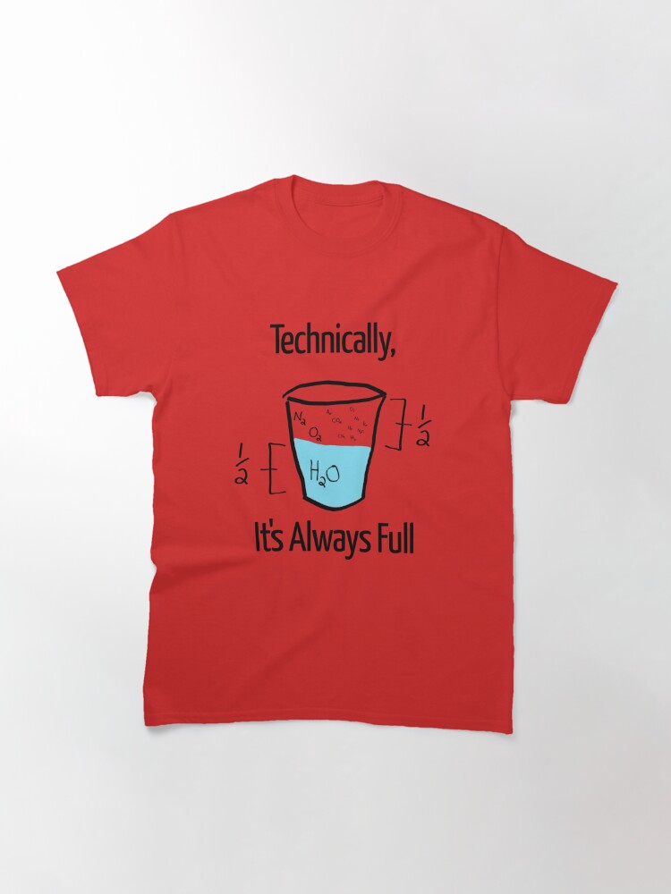 تیشرت طرح علم خوشبین است Science is Optimistic با یک حالت فانتزی و نوشته هایی در کنار طرح، سعی دارد این مفهوم را منتقل کند که از نظر فنی، لیوان خالی نیست و با کنایه ای گذرا به اصطلاح "دیدن نیمه پر لیوان" رسالت مفهومی خود را در قالب یک لباس به سرانجام می رساند.