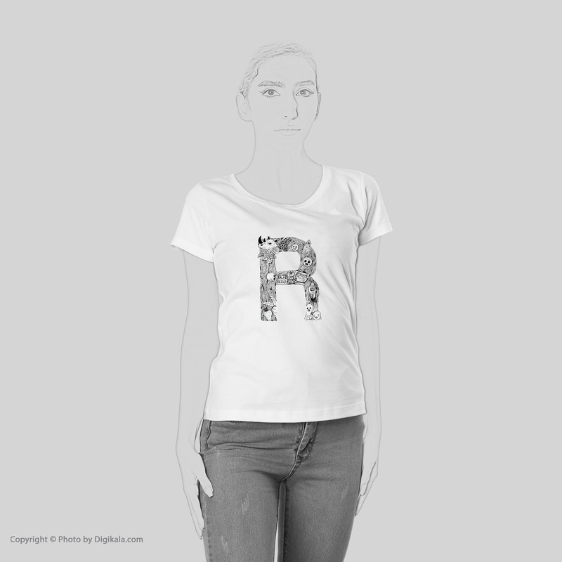 تی شرت آستین کوتاه زنانه شین دیزاین طرح حروف اول اسم R کد 4555