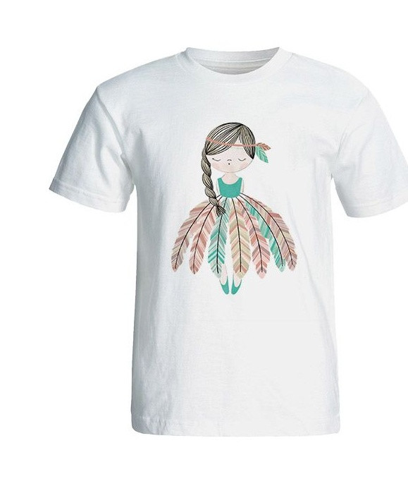 تی شرت آستین کوتاه زنانه طرح دختر سرخ پوست کد 35008