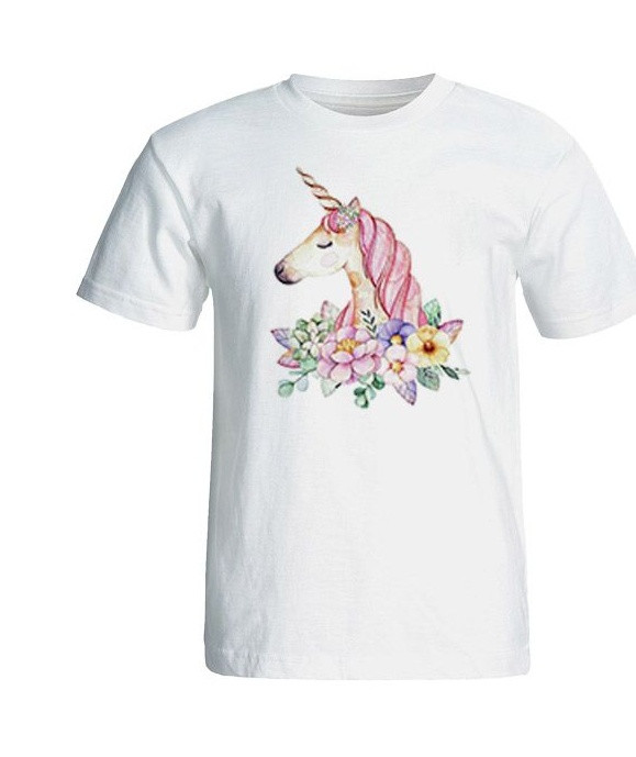 تی شرت آستین کوتاه زنانه طرح یونیکورن کد 26049