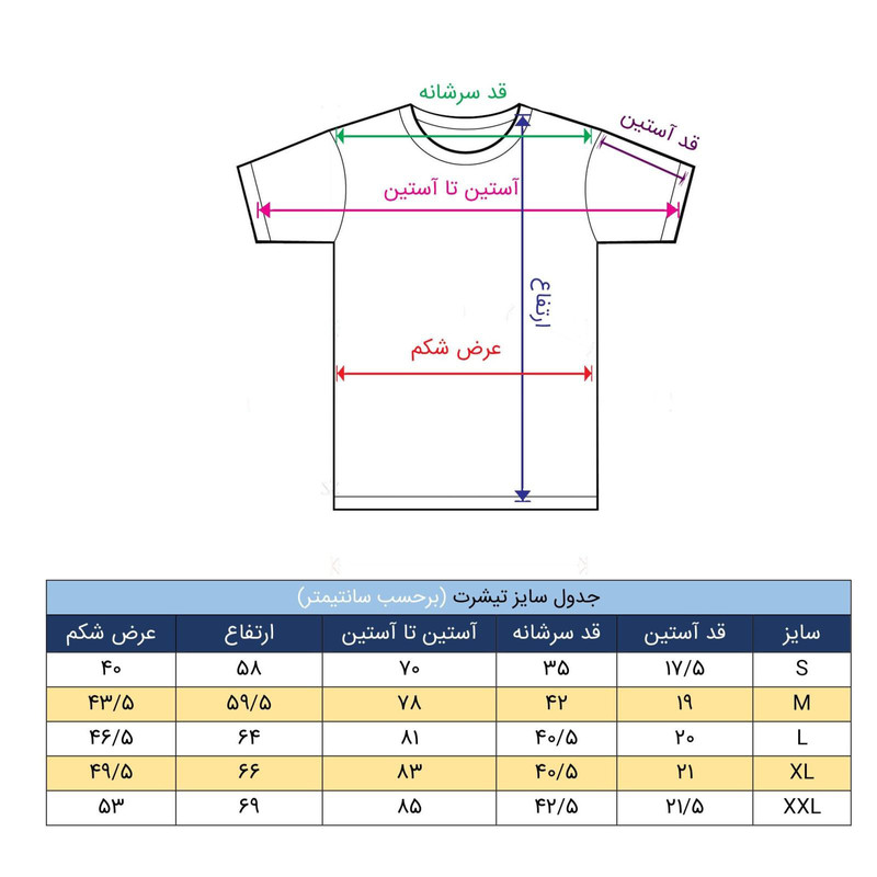 سایز تیشرت: