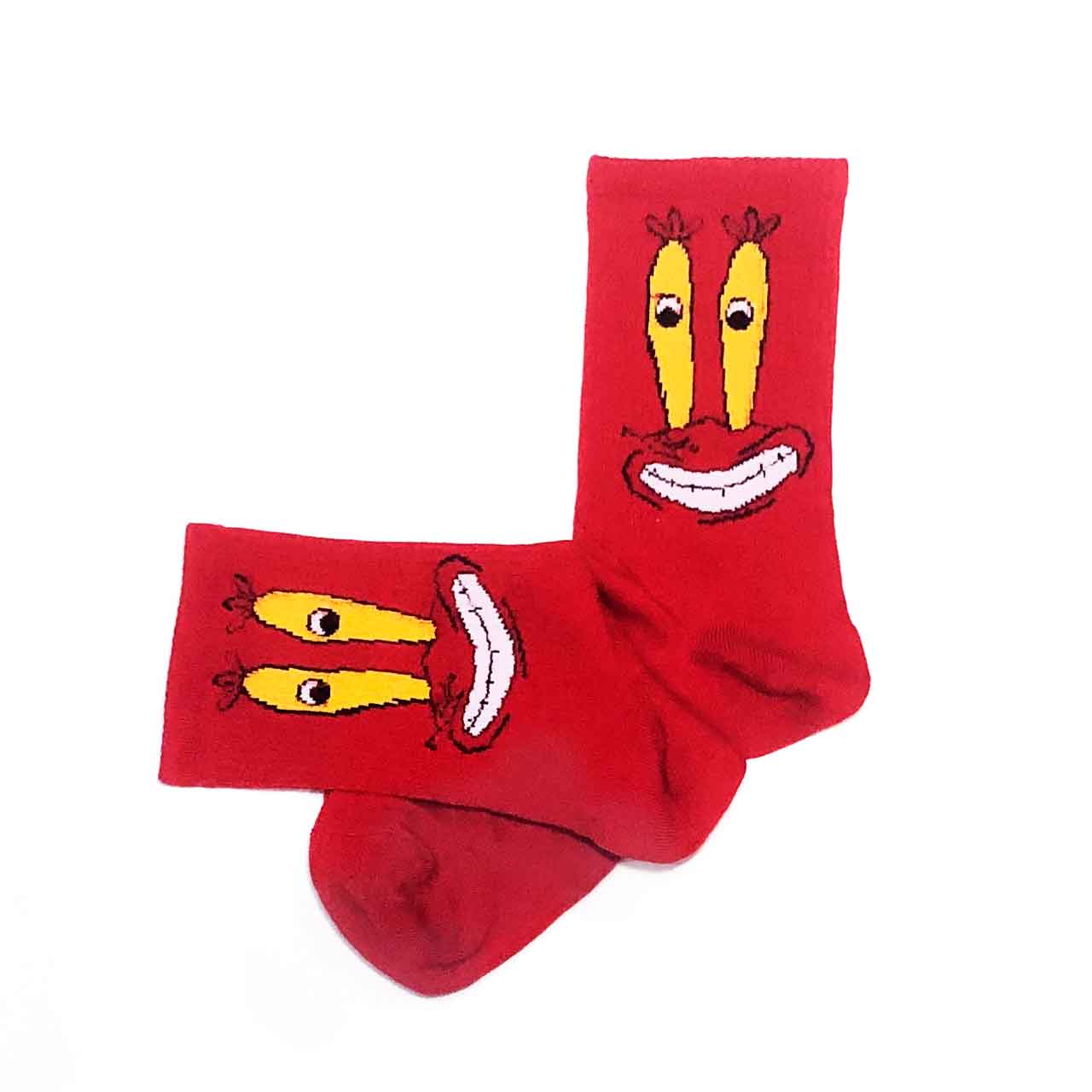 جوراب ساقدار نخی فانتزی کارتونی طرح آقای خرچنگ در ایران به تولید رسیده است و میتوان کیفیت آن را مناسب ارزیابی کرد.