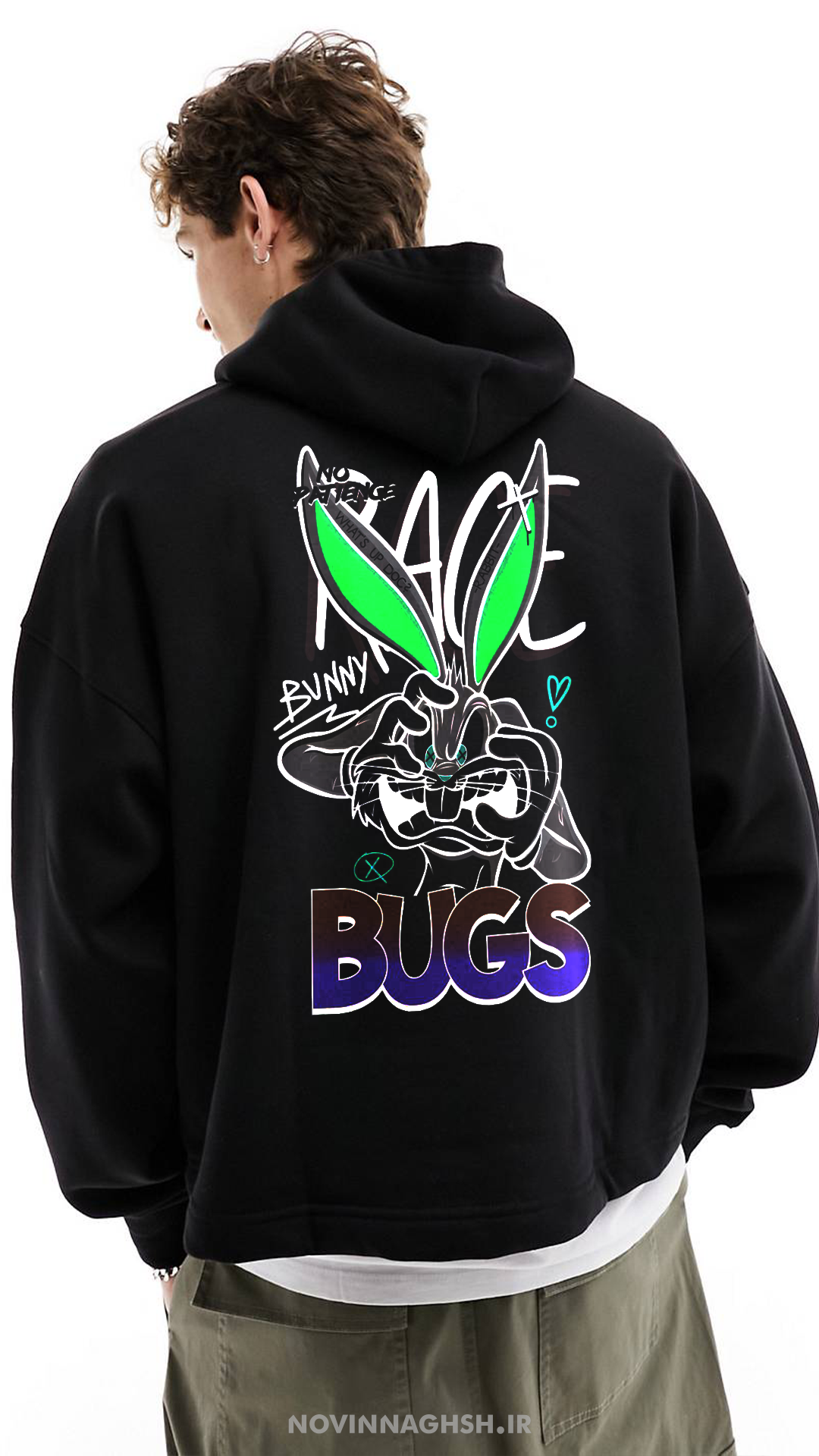 هودی طرح فانتزی باگزبانی BUGS BUNNY دارای لایه داخل کرک دار گرم بوده و رنگ های چاپی روی آن زنده و شاد هستند. قسمت جلویی جیب دارد و یک کلاه بنددار در بالای لباس قرار گرفته است.