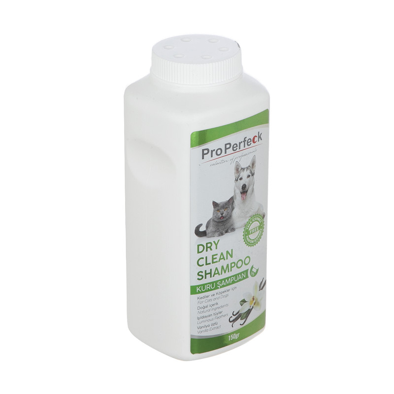 شامپو خشک پروپرفک یک محصول بهداشتی سگ و گربه بدون نیاز به آب راه حلی راحت و سریع برای تمیز کردن پت شما بدون نیاز به حمام با آب است. این پودر با استفاده از ذرات جاذب روغن و بو، کثیفی و بو را از بین می برد و پوست و موی سگ و گربه شما را تمیز و شاداب می کند.