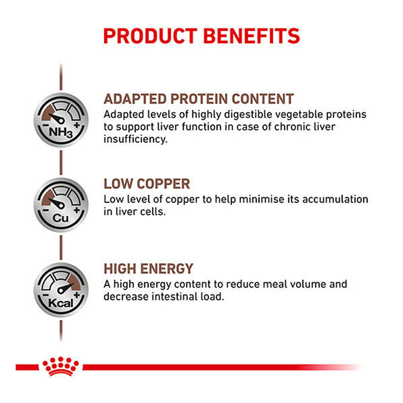 - محتوای انرژی بالا: کمک به کاهش تخریب پروتئین با تامین انرژی از چربی در ترکیب با محتوای متوسط و کاهش یافته پروتئین با کیفیت بالا و کاهش خطر پیشرفت انسفالوپاتی کبدی