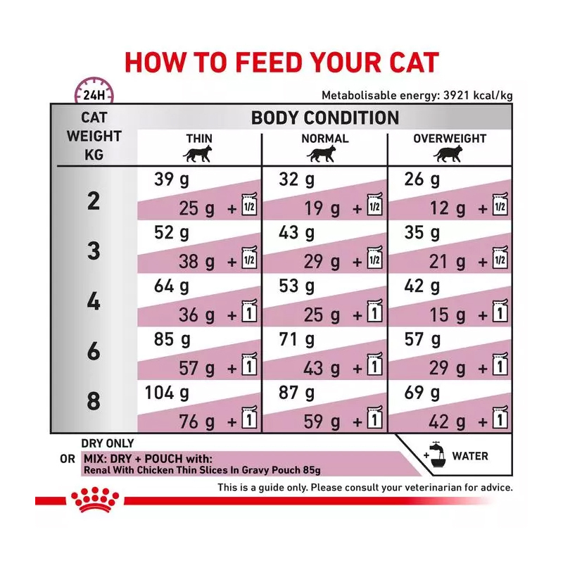 گربه های مبتلا به نارسایی مزمن کلیه از کمبود اشتها رنج می برند. غذای خشک گربه رویال کنین مدل Renal بسیار خوشمزه است و راحت جویده می شود، حتی برای گربه هایی که التهاب لثه دارند نیز مناسب است. محتوای بالای آنتی اکسیدان می تواند به خنثی کردن رادیکال های آزاد کمک کند.