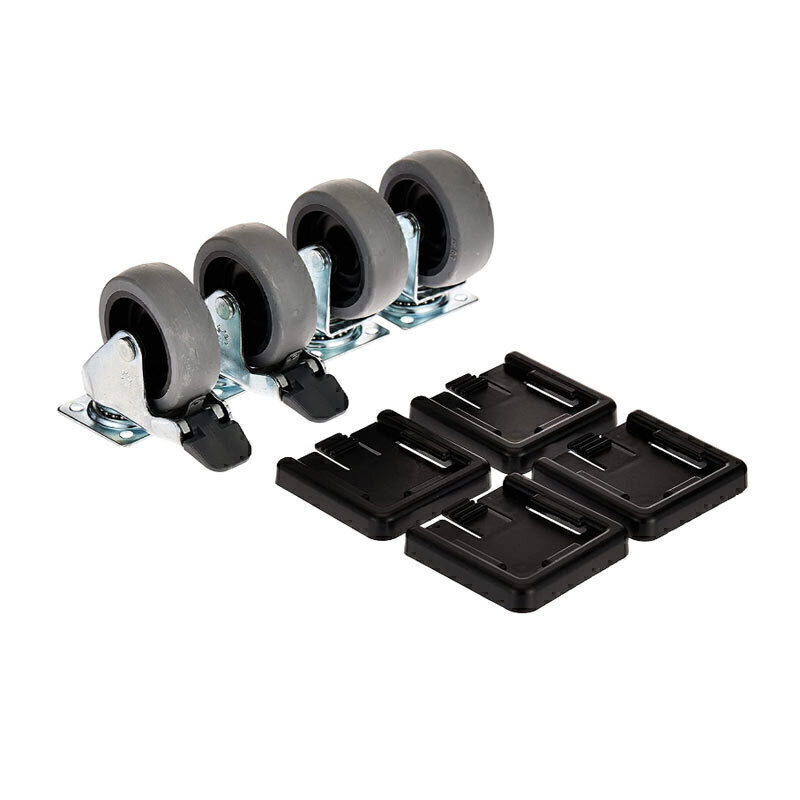 یک بسته حاوی 4 عدد چرخ (دو عدد چرخ جلو و دو عدد چرغ عقب)، 16 عدد پیچ و 4 عدد محل اتصال چرخ