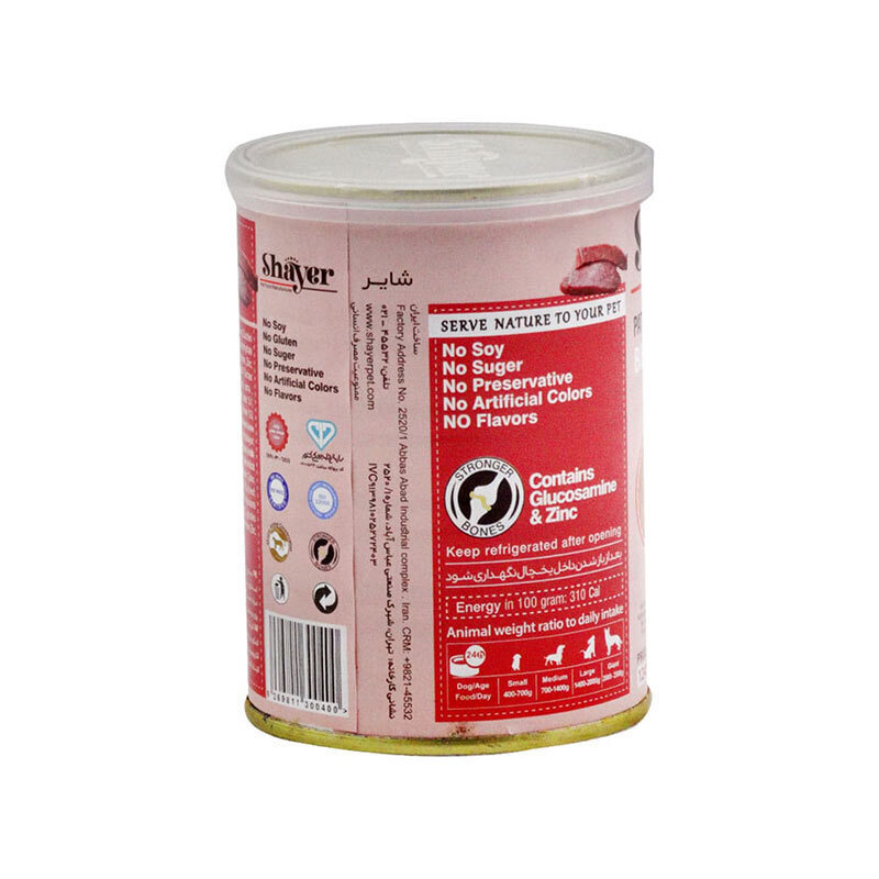 کنسرو غذای سگ دل و جگر مرغ در سس مخصوص شایر Shayer Natural Dog Food Heart & Liver وزن 400 گرم