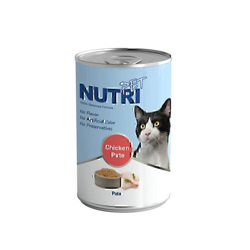 کنسرو غذای گربه نوتری پت مدل Chicken Pate تهیه شده از مواد اولیه کاملا تازه که ترکیبات تشکیل دهنده آن گوشت سفید،خمیر استخوان،نشاسته گیاهی،سبزیجات،آرد سوخاری،عناصر معدنی کمیاب و مکملهای ویتامینه K،E،D،B،A میباشد ، این محصول دارای مجوز های لازم از سازمان دامپزشکی است